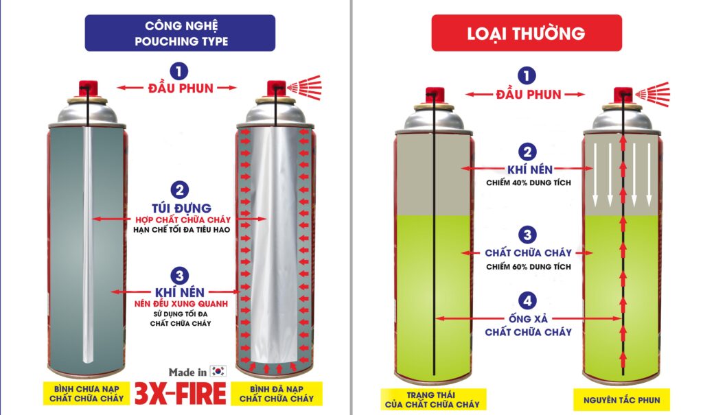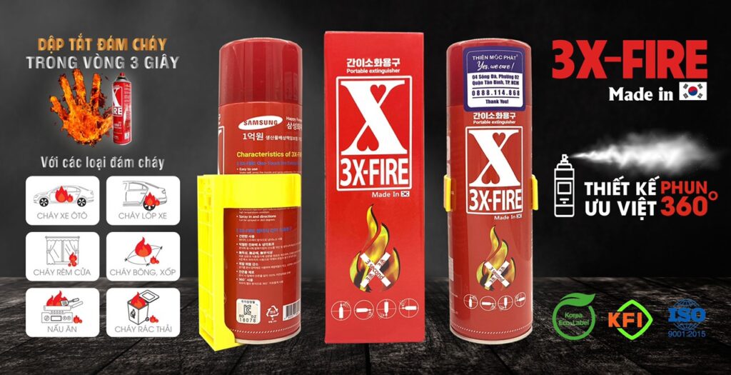 • Đồng thời khi phun 3X-Fire bao bọc đám cháy giống như một viên nang, cắt hoàn toàn oxi, dập tắt hoàn toàn đám cháy.